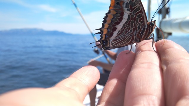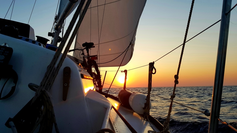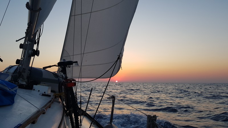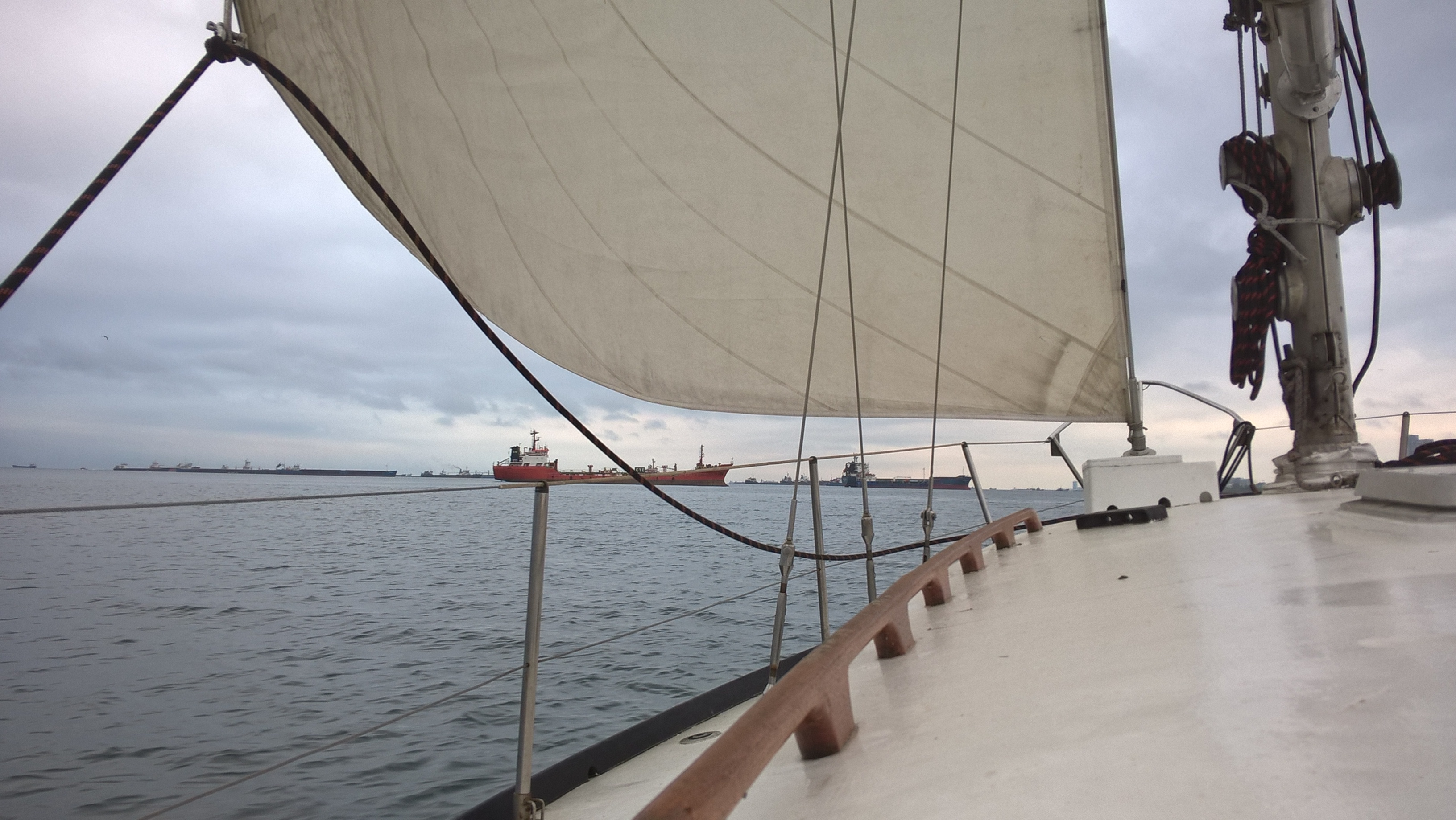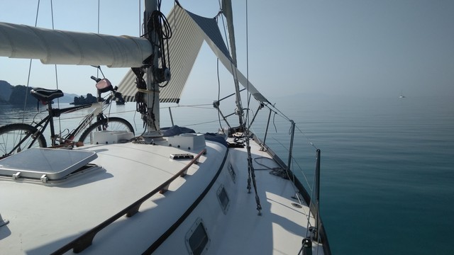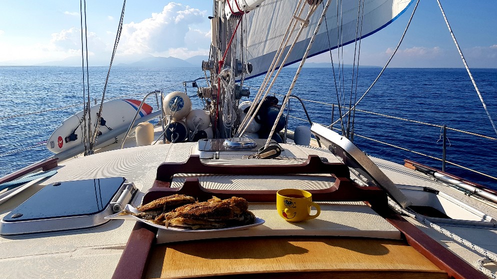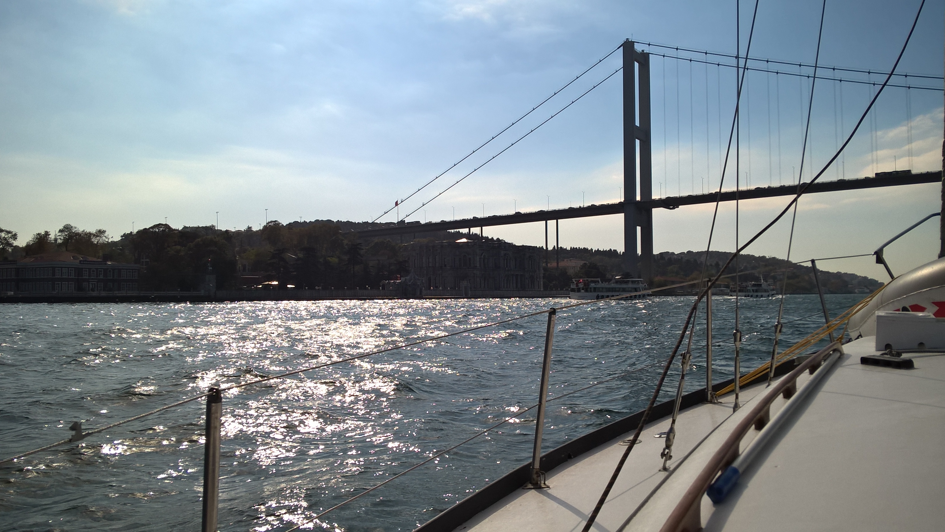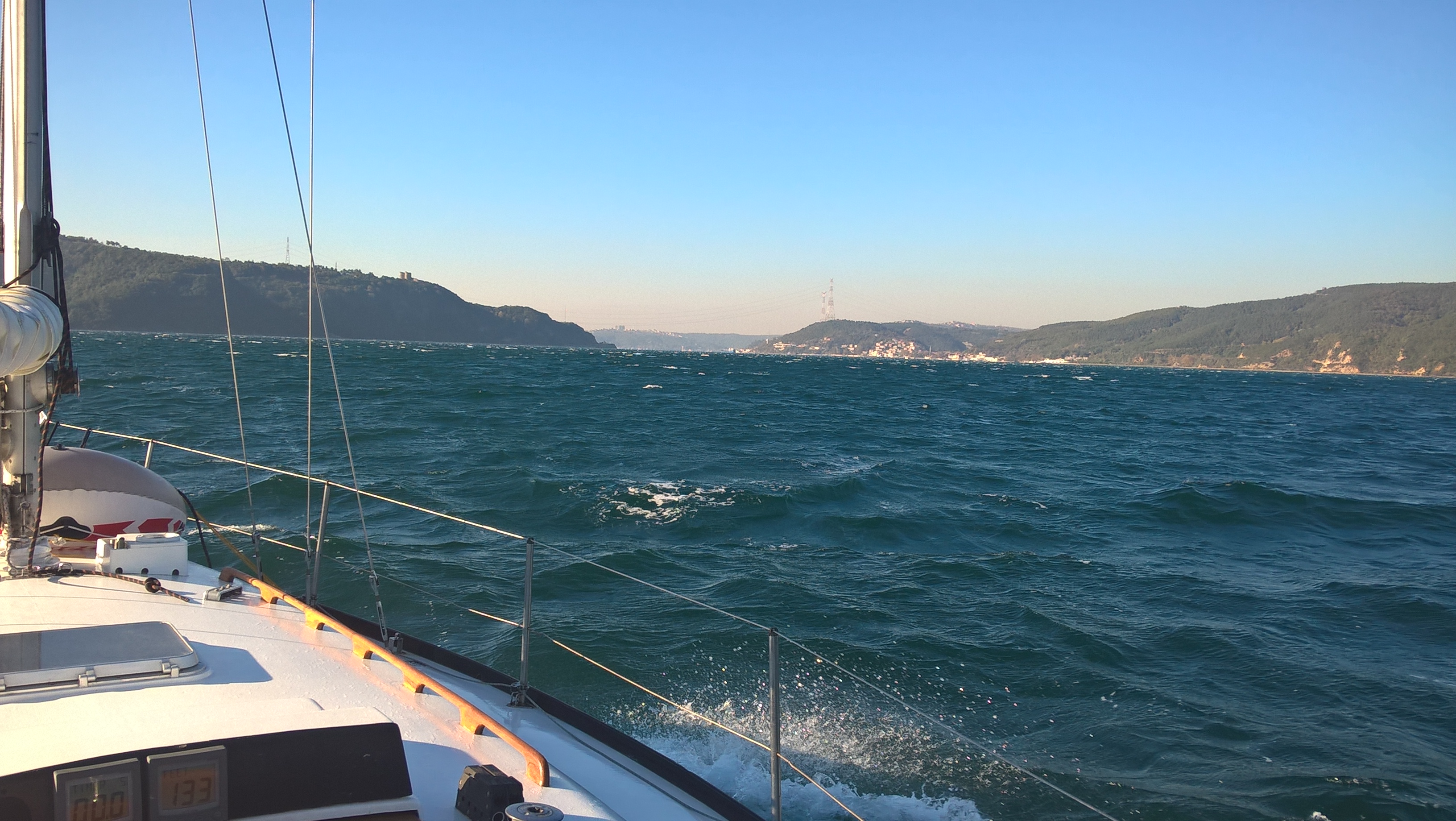 Сегодня пришлось хорошенько поработать — сломавшийся автопилот и ветер не давали расслабиться: после мыса Баба Бурну кааааак включило 7-8 м/с с постоянными порывами до 18 м/с (которых, кстати ни в одном прогнозе не было).